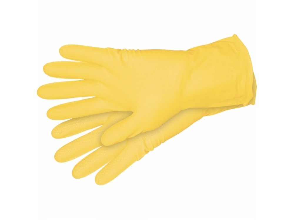 Перчатки хозяйственные изготовлены из прочного латекса. Используются в хозяйственных работах для защиты рук.
